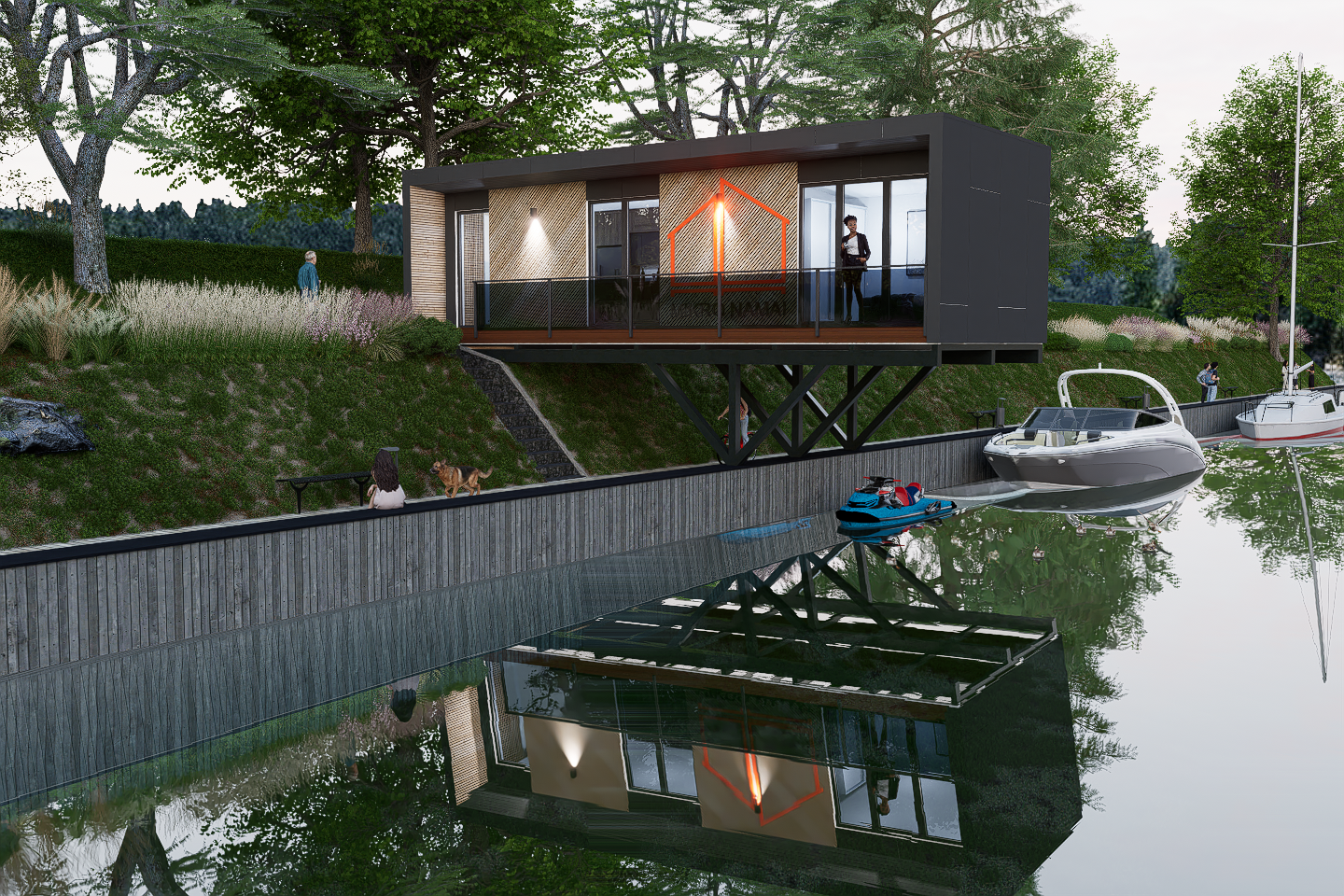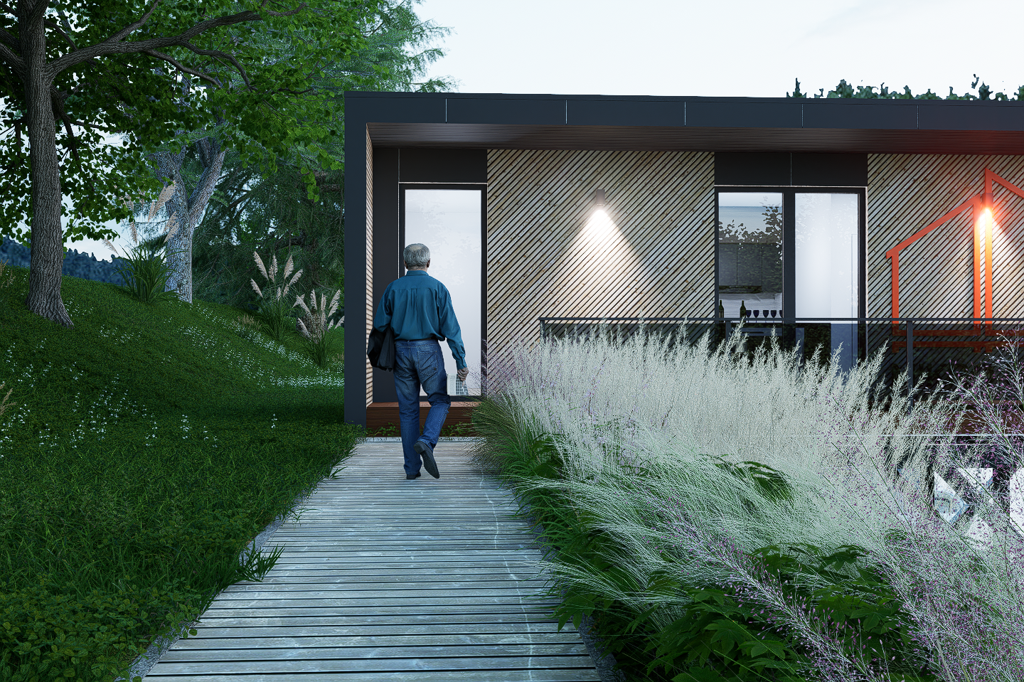 - Fasado apdaila kombinuota. Degintos dailylentės ir fibrocementinės fasadinės apdailos plokštės (Arba kita pasirinkta apdaila)