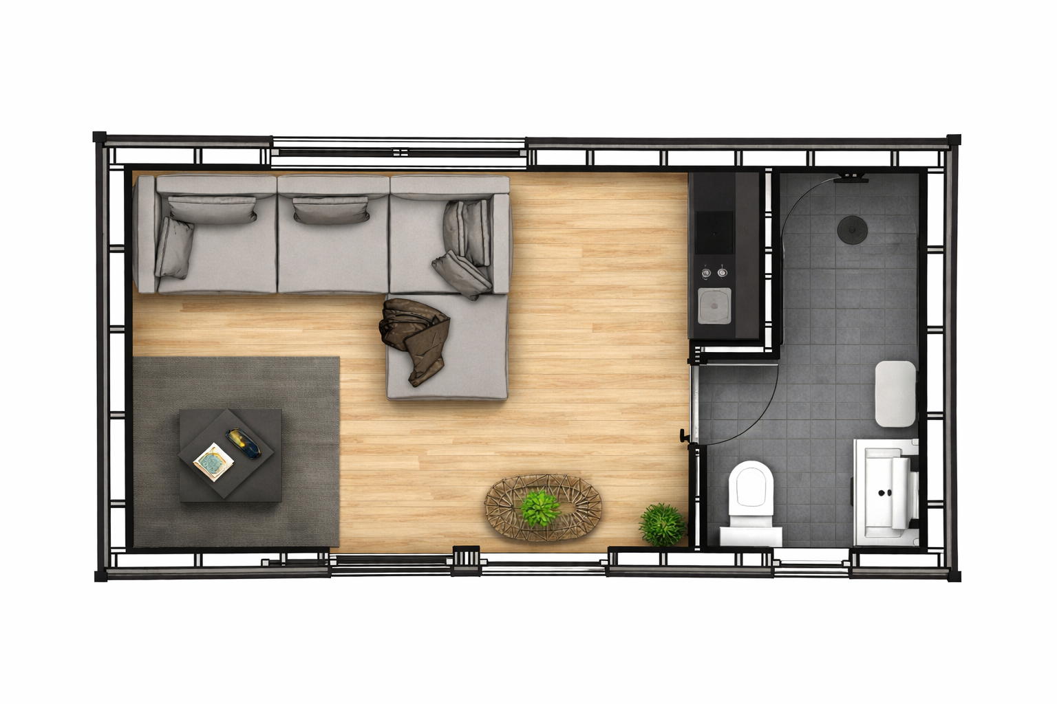 Užstatomas plotas 23,40m² (Ilgis 6,5m, plotis 3,6m)