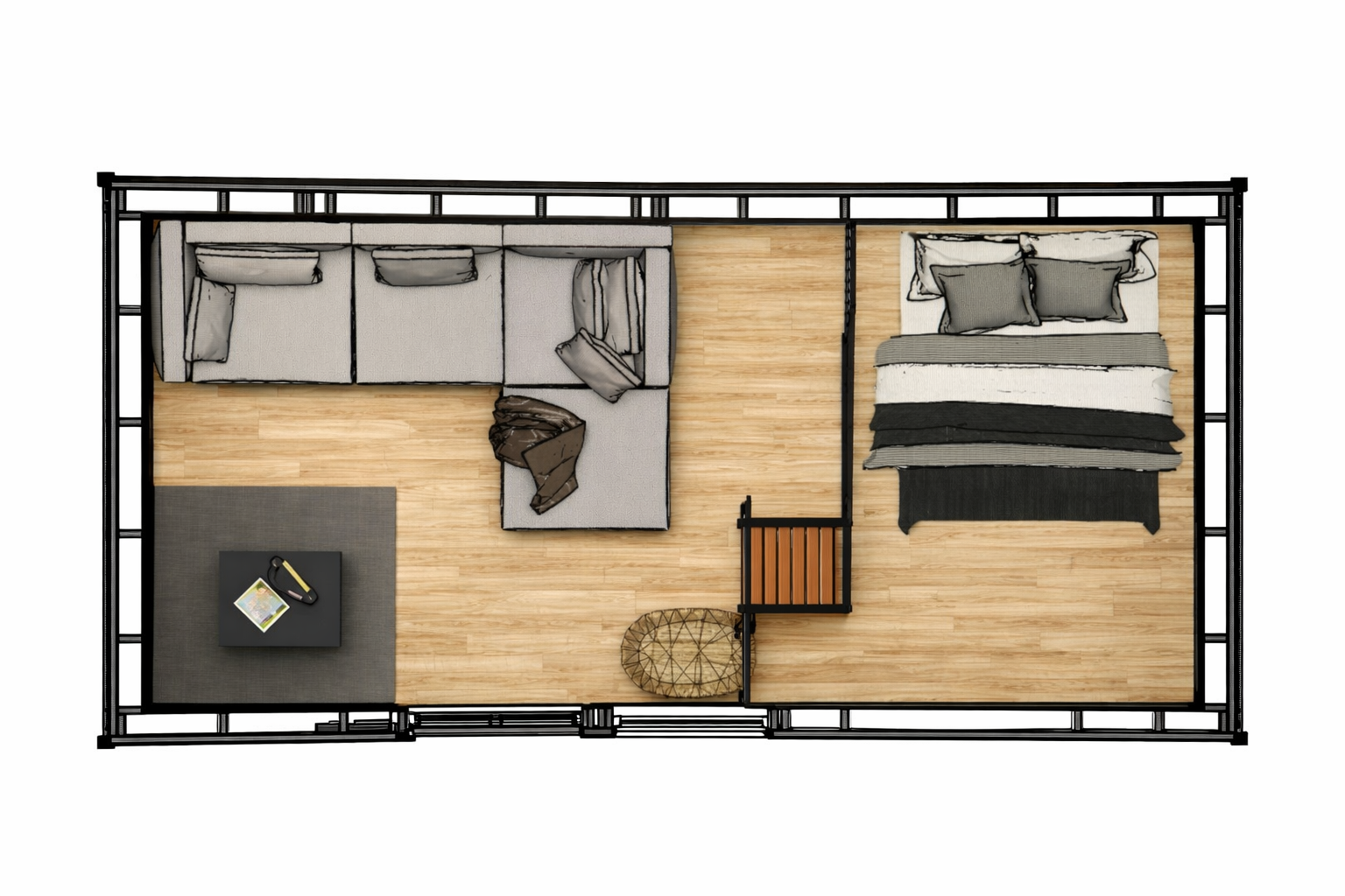Matmenys su pastoge – Ilgis 7,3m, plotis 4,3m